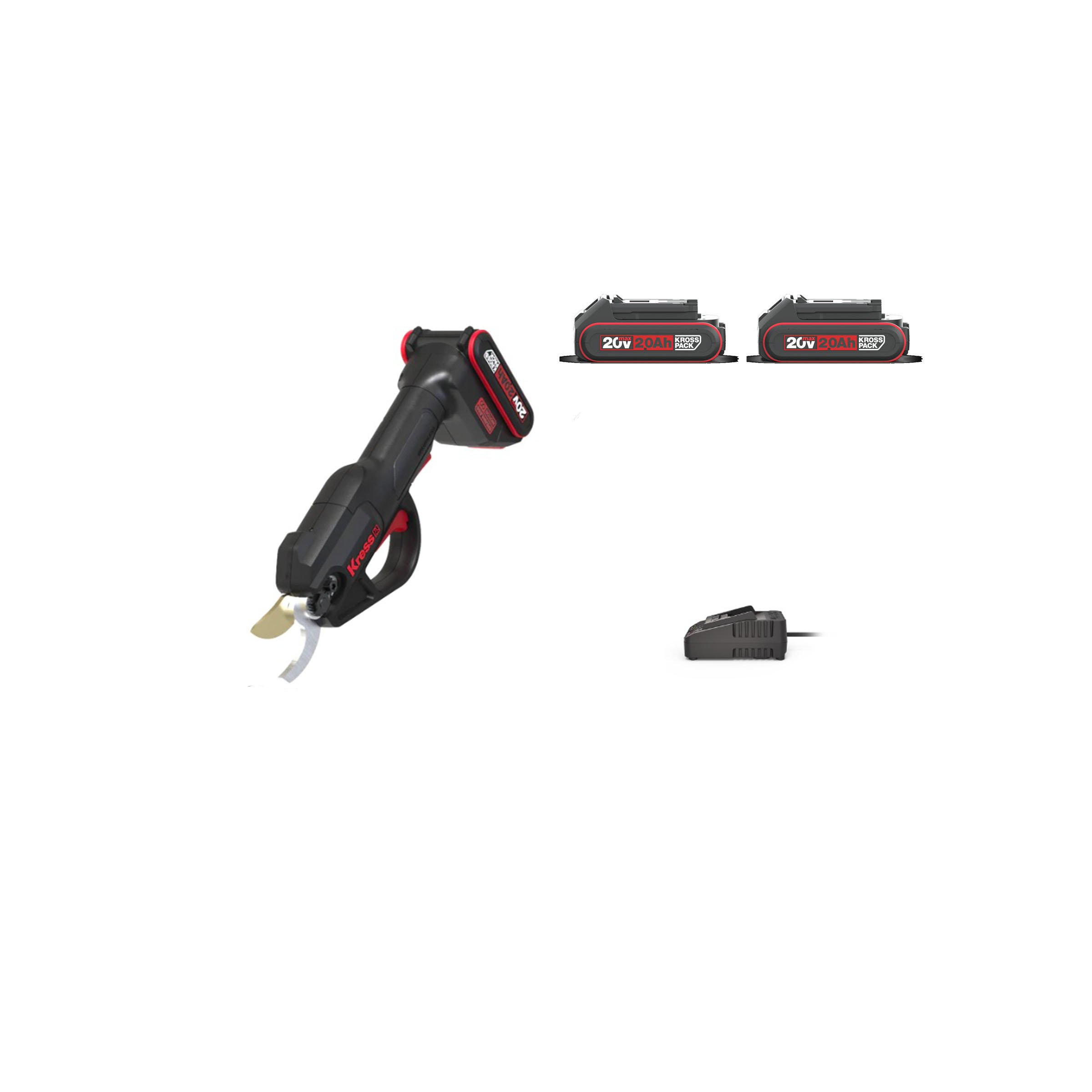 Promotional bundle featuring the KG340 20v pruning shears, 2 x KAB02 20v 2ah batteries and a KAC02 charger.